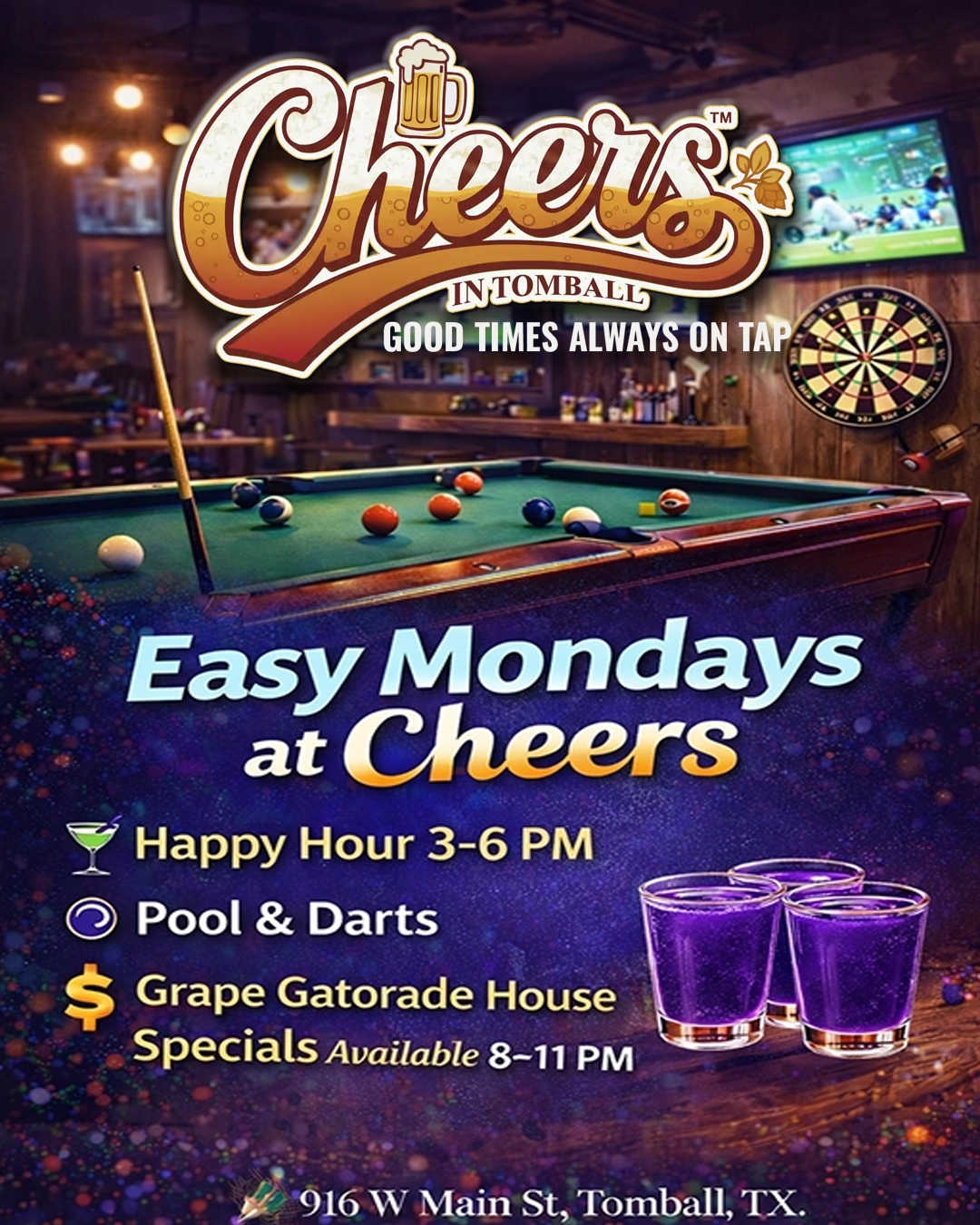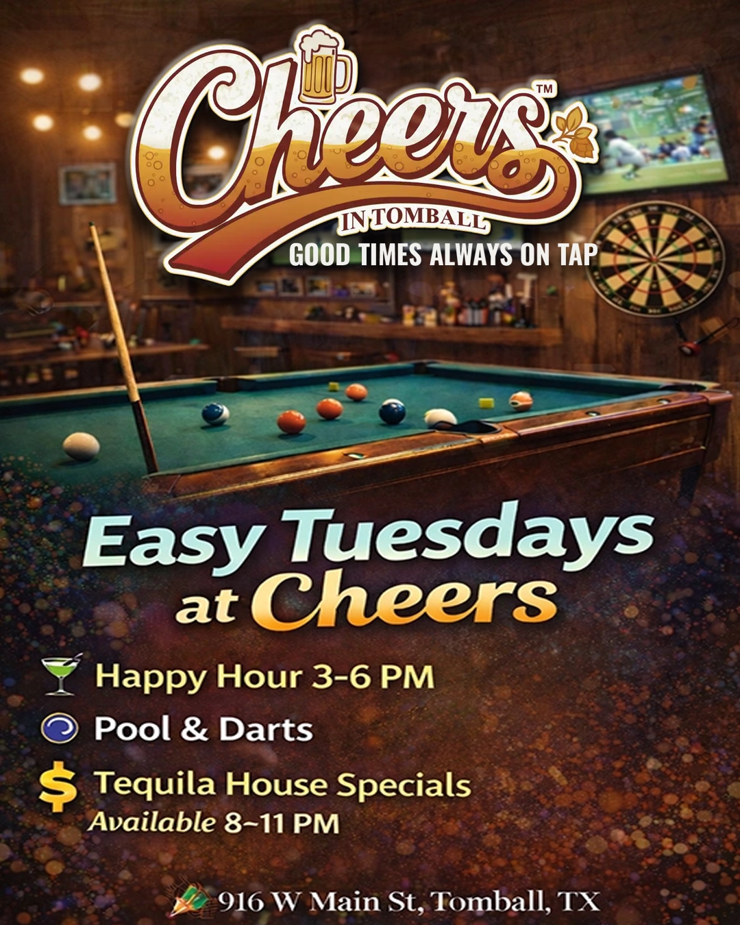 Welcome to Cheers In Tomball - A Neighborhood Bar offering fantastic drink specials and friendly inviting atmosphere. Once you're here, you're family!